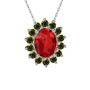 Garnet ve peridot 8 ayar beyaz altın kolye (40 cm gümüş rolo zincir)