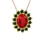Garnet ve peridot 925 ayar altın kaplama gümüş kolye (40 cm rose altın rolo zincir)