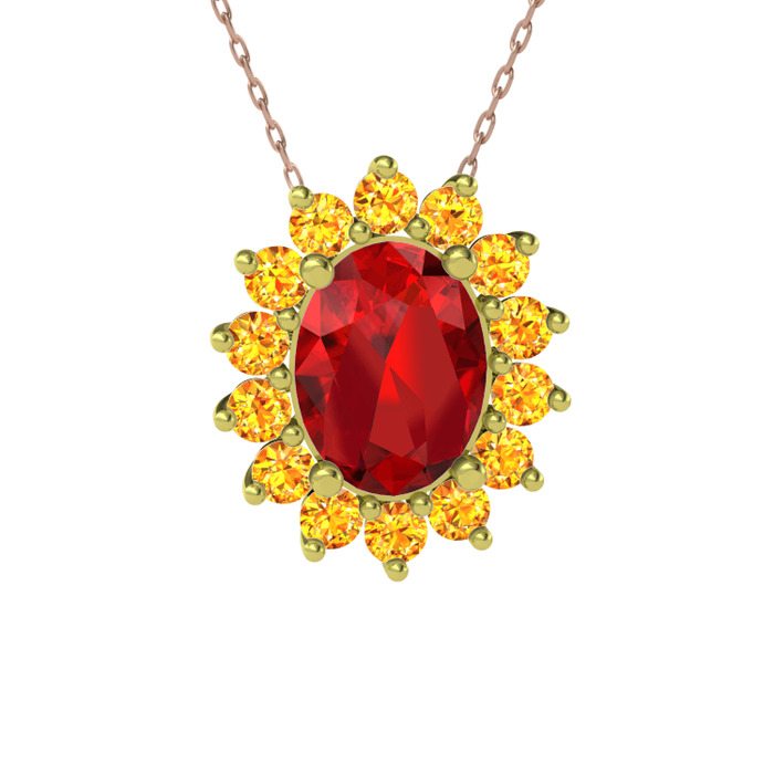 Garnet ve sitrin 14 ayar altın kolye (40 cm rose altın rolo zincir)