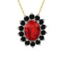 Garnet ve siyah zirkon 14 ayar beyaz altın kolye (40 cm gümüş rolo zincir)