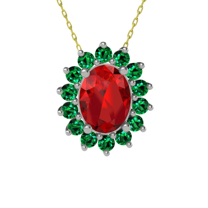 Garnet ve yeşil kuvars 18 ayar beyaz altın kolye (40 cm altın rolo zincir)