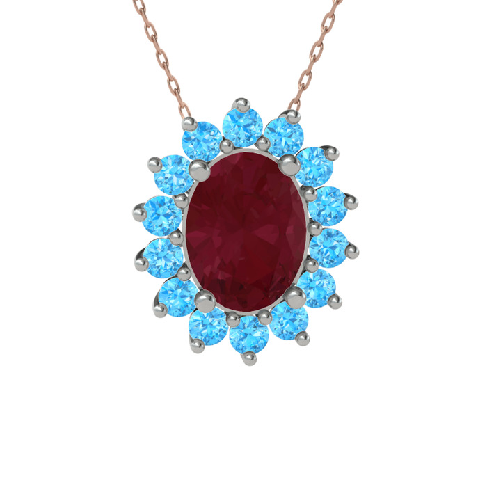 Kök yakut ve akuamarin 18 ayar beyaz altın kolye (40 cm rose altın rolo zincir)