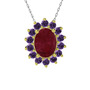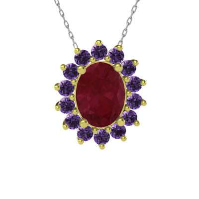 Kök yakut ve ametist 8 ayar altın kolye (40 cm gümüş rolo zincir)