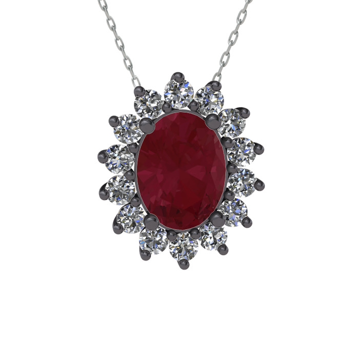 Kök yakut ve beyaz zirkon 925 ayar siyah rodyum kaplama gümüş kolye (40 cm beyaz altın rolo zincir)