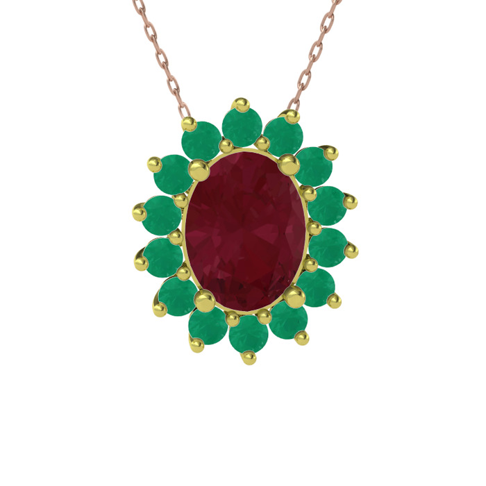 Kök yakut ve kök zümrüt 925 ayar altın kaplama gümüş kolye (40 cm rose altın rolo zincir)