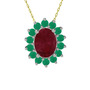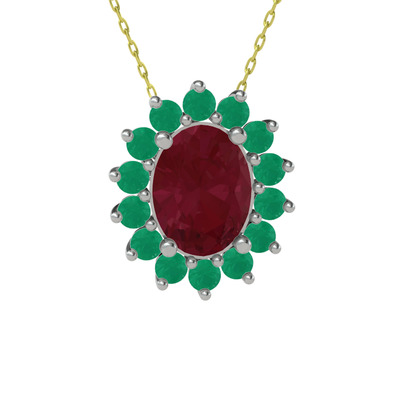 Kök yakut ve kök zümrüt 925 ayar gümüş kolye (40 cm gümüş rolo zincir)