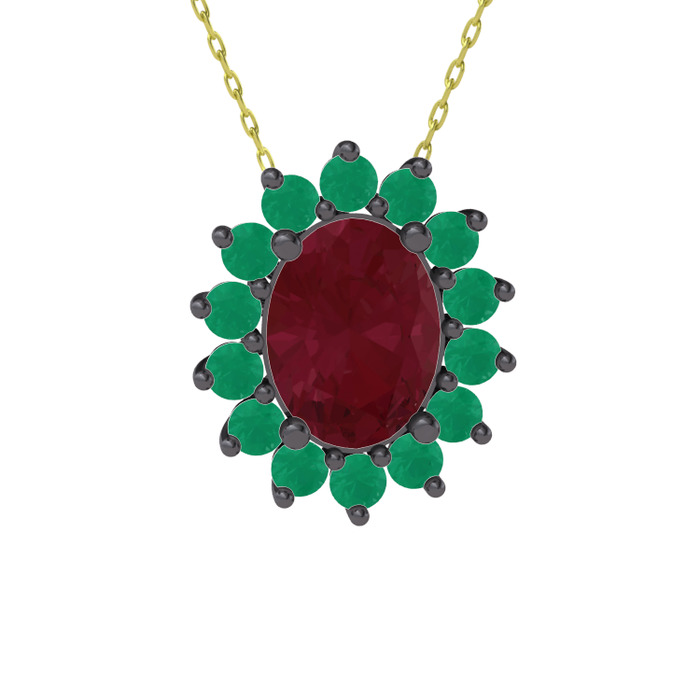 Kök yakut ve kök zümrüt 925 ayar siyah rodyum kaplama gümüş kolye (40 cm gümüş rolo zincir)