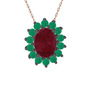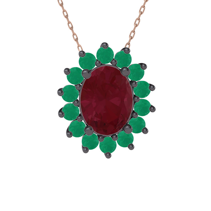 Kök yakut ve kök zümrüt 925 ayar siyah rodyum kaplama gümüş kolye (40 cm rose altın rolo zincir)