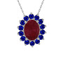 Kök yakut ve lab safir 18 ayar beyaz altın kolye (40 cm beyaz altın rolo zincir)