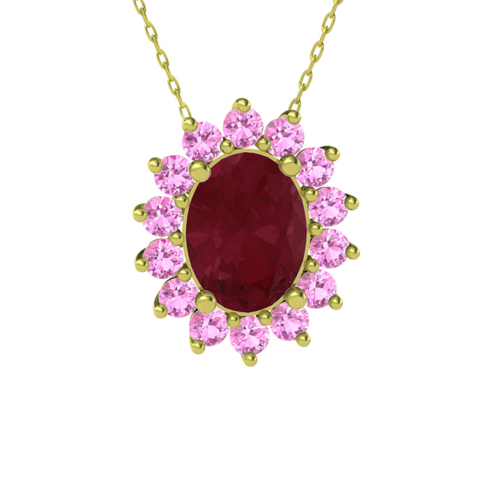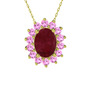 Kök yakut ve pembe kuvars 8 ayar altın kolye (40 cm altın rolo zincir)