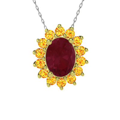 Kök yakut ve sitrin 8 ayar altın kolye (40 cm beyaz altın rolo zincir)