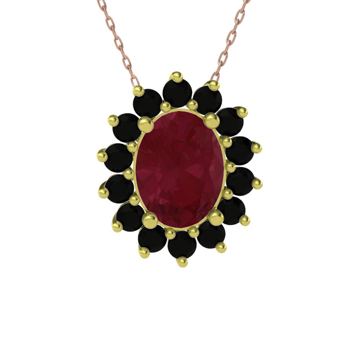 Kök yakut ve siyah zirkon 18 ayar altın kolye (40 cm rose altın rolo zincir)