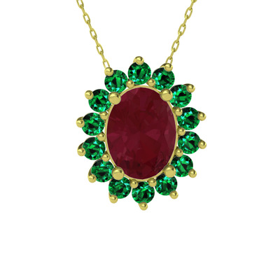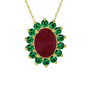 Kök yakut ve yeşil kuvars 8 ayar altın kolye (40 cm altın rolo zincir)