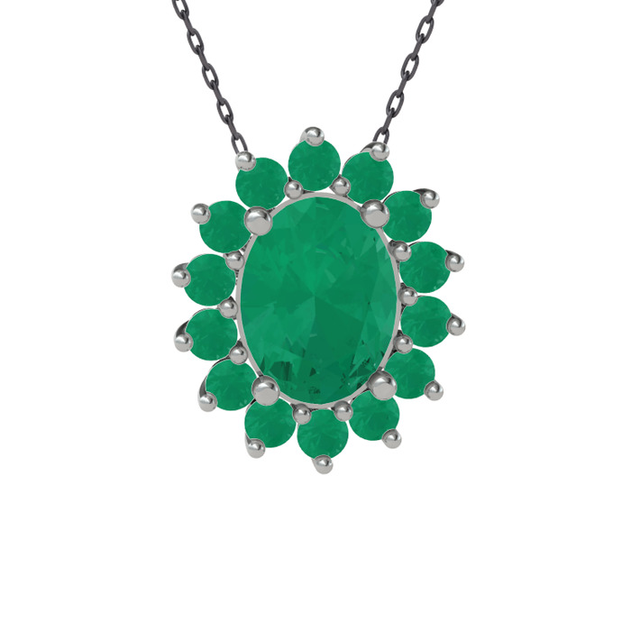 Kök zümrüt 14 ayar beyaz altın kolye (40 cm gümüş rolo zincir)