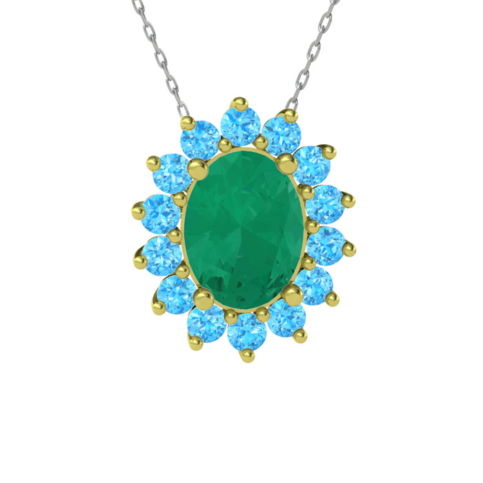 Kök zümrüt ve akuamarin 14 ayar altın kolye (40 cm beyaz altın rolo zincir)