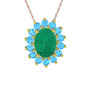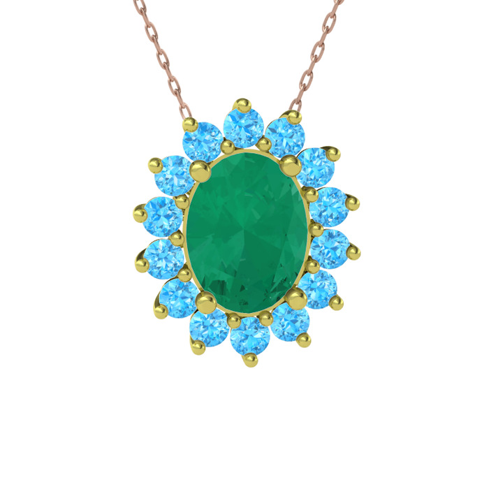Kök zümrüt ve akuamarin 8 ayar altın kolye (40 cm rose altın rolo zincir)