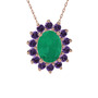 Kök zümrüt ve ametist 18 ayar rose altın kolye (40 cm rose altın rolo zincir)