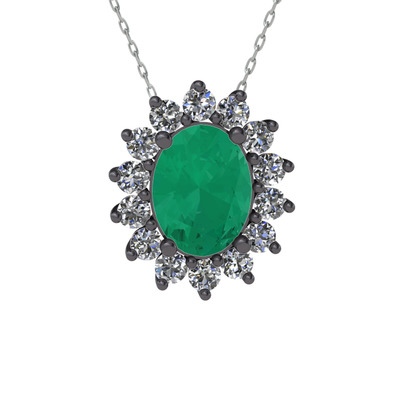 Kök zümrüt ve beyaz zirkon 925 ayar siyah rodyum kaplama gümüş kolye (40 cm gümüş rolo zincir)