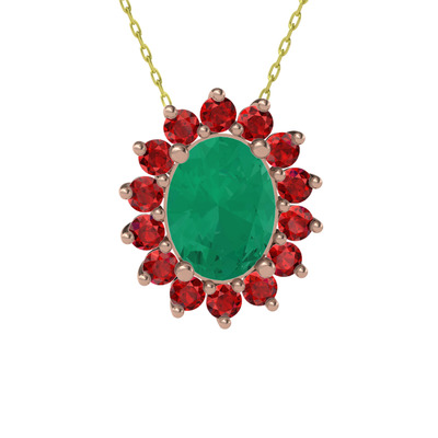 Kök zümrüt ve garnet 18 ayar rose altın kolye (40 cm gümüş rolo zincir)