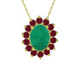 Kök zümrüt ve kök yakut 14 ayar altın kolye (40 cm altın rolo zincir)