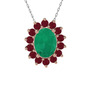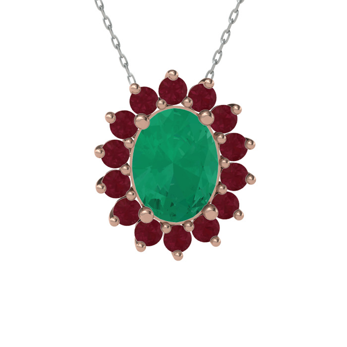 Kök zümrüt ve kök yakut 8 ayar rose altın kolye (40 cm gümüş rolo zincir)