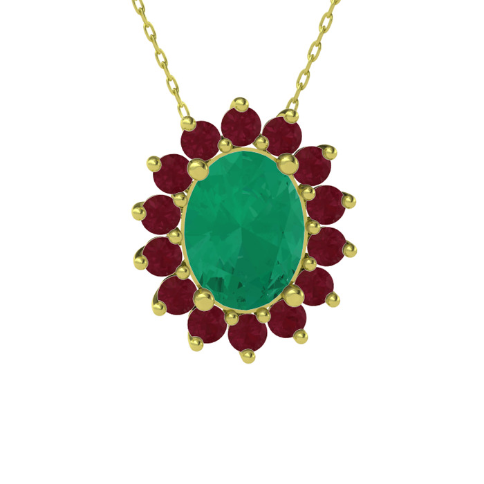 Kök zümrüt ve kök yakut 925 ayar altın kaplama gümüş kolye (40 cm altın rolo zincir)