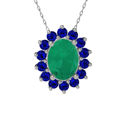 Kök zümrüt ve lab safir 18 ayar beyaz altın kolye (40 cm beyaz altın rolo zincir)
