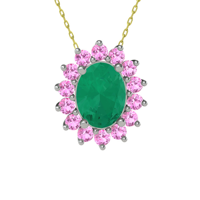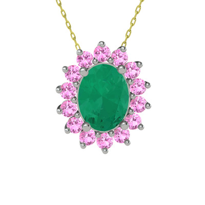 Kök zümrüt ve pembe kuvars 925 ayar gümüş kolye (40 cm gümüş rolo zincir)