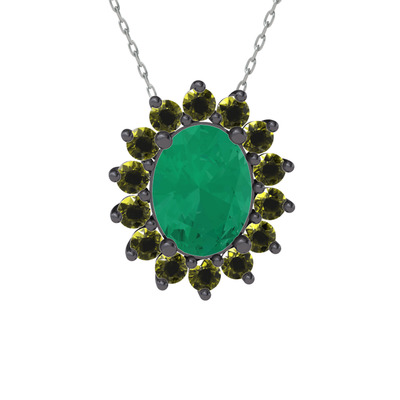 Kök zümrüt ve peridot 925 ayar siyah rodyum kaplama gümüş kolye (40 cm beyaz altın rolo zincir)