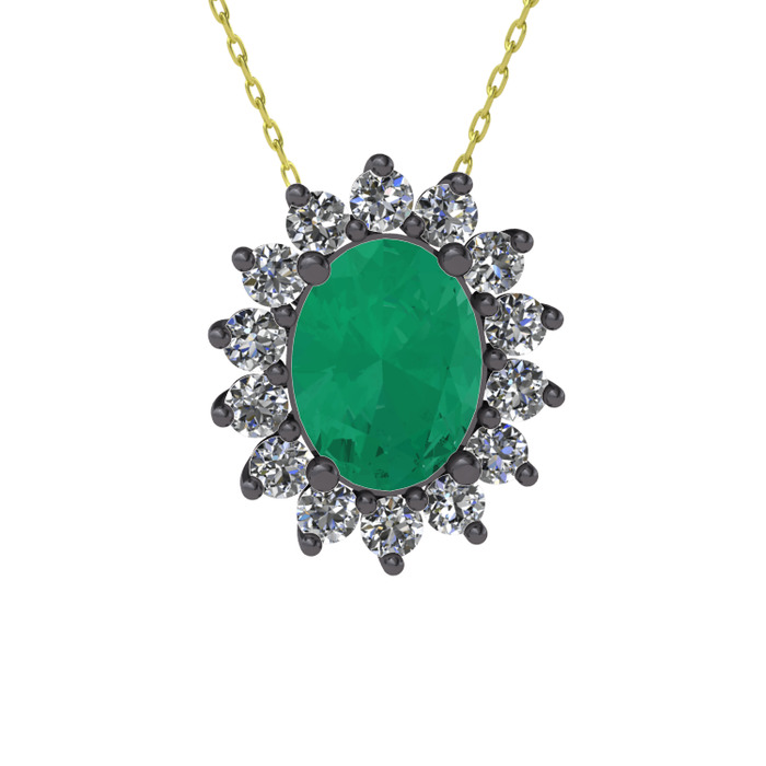 Kök zümrüt ve pırlanta 925 ayar siyah rodyum kaplama gümüş kolye (0.504 karat, 40 cm altın rolo zincir)