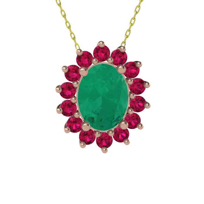 Kök zümrüt ve rodolit garnet 8 ayar rose altın kolye (40 cm altın rolo zincir)
