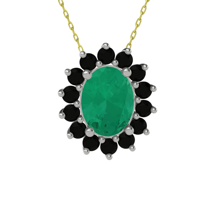 Kök zümrüt ve siyah zirkon 18 ayar beyaz altın kolye (40 cm altın rolo zincir)