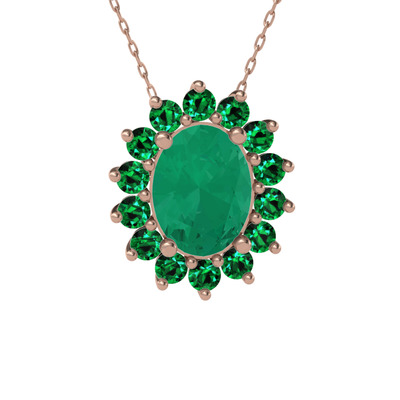 Kök zümrüt ve yeşil kuvars 925 ayar rose altın kaplama gümüş kolye (40 cm rose altın rolo zincir)