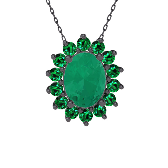 Kök zümrüt ve yeşil kuvars 925 ayar siyah rodyum kaplama gümüş kolye (40 cm gümüş rolo zincir)