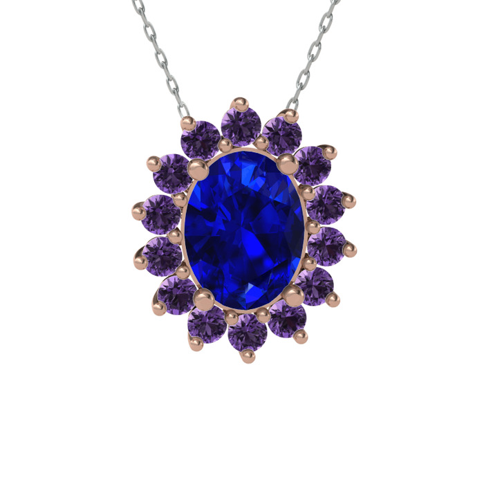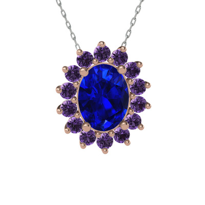 Lab safir ve ametist 8 ayar rose altın kolye (40 cm gümüş rolo zincir)