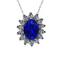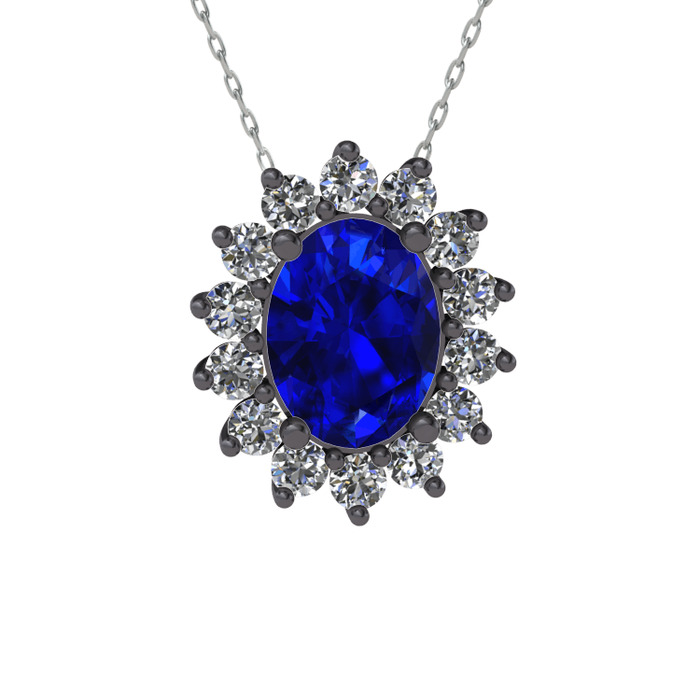 Lab safir ve beyaz zirkon 925 ayar siyah rodyum kaplama gümüş kolye (40 cm gümüş rolo zincir)