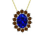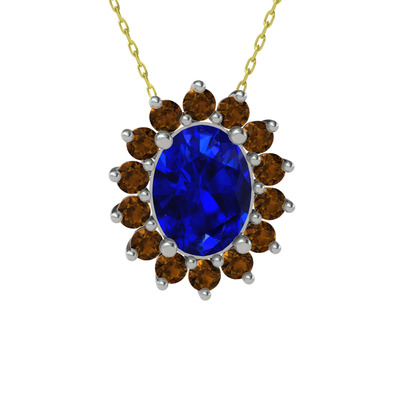 Lab safir ve dumanlı kuvars 18 ayar beyaz altın kolye (40 cm altın rolo zincir)