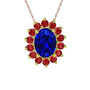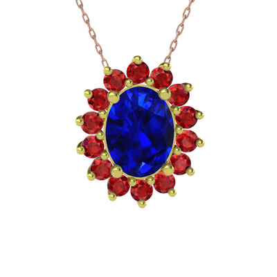Lab safir ve garnet 14 ayar altın kolye (40 cm rose altın rolo zincir)