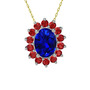 Lab safir ve garnet 925 ayar gümüş kolye (40 cm gümüş rolo zincir)