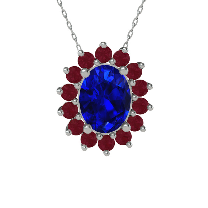 Lab safir ve kök yakut 8 ayar beyaz altın kolye (40 cm gümüş rolo zincir)