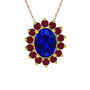 Lab safir ve kök yakut 925 ayar altın kaplama gümüş kolye (40 cm rose altın rolo zincir)