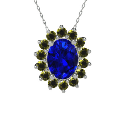 Lab safir ve peridot 14 ayar beyaz altın kolye (40 cm beyaz altın rolo zincir)