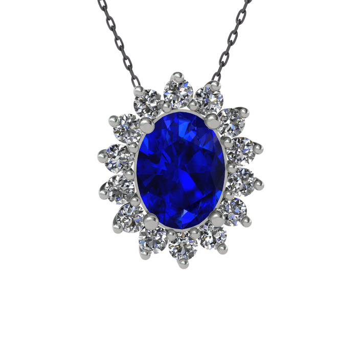 Lab safir ve pırlanta 18 ayar beyaz altın kolye (0.504 karat, 40 cm gümüş rolo zincir)