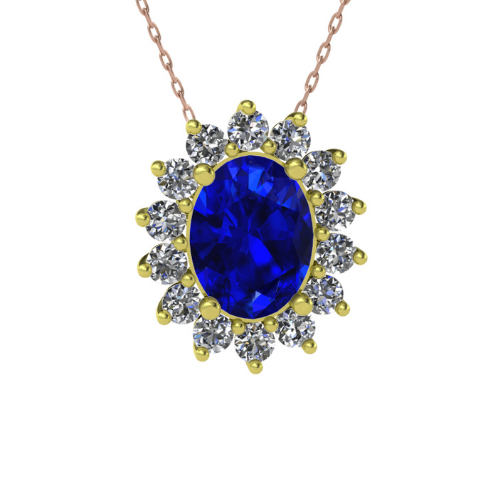 Lab safir ve pırlanta 925 ayar altın kaplama gümüş kolye (0.504 karat, 40 cm rose altın rolo zincir)