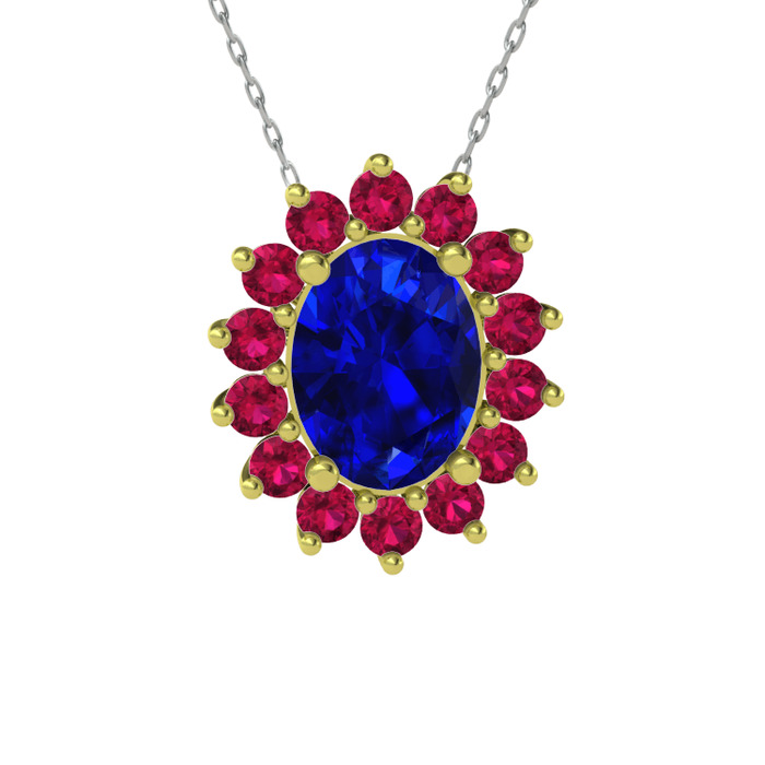Lab safir ve rodolit garnet 14 ayar altın kolye (40 cm beyaz altın rolo zincir)