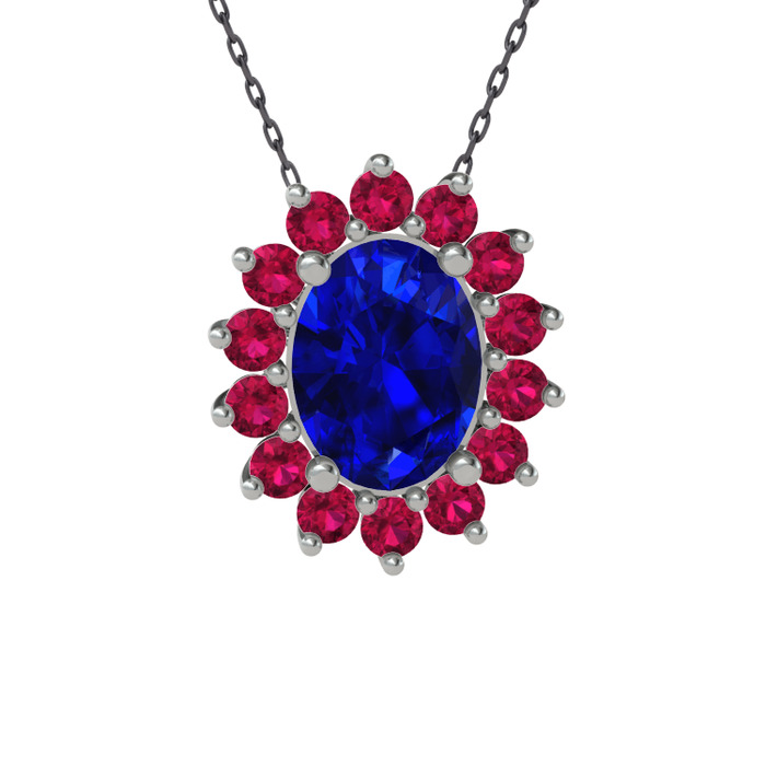 Lab safir ve rodolit garnet 18 ayar beyaz altın kolye (40 cm gümüş rolo zincir)