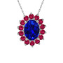 Lab safir ve rodolit garnet 925 ayar gümüş kolye (40 cm beyaz altın rolo zincir)