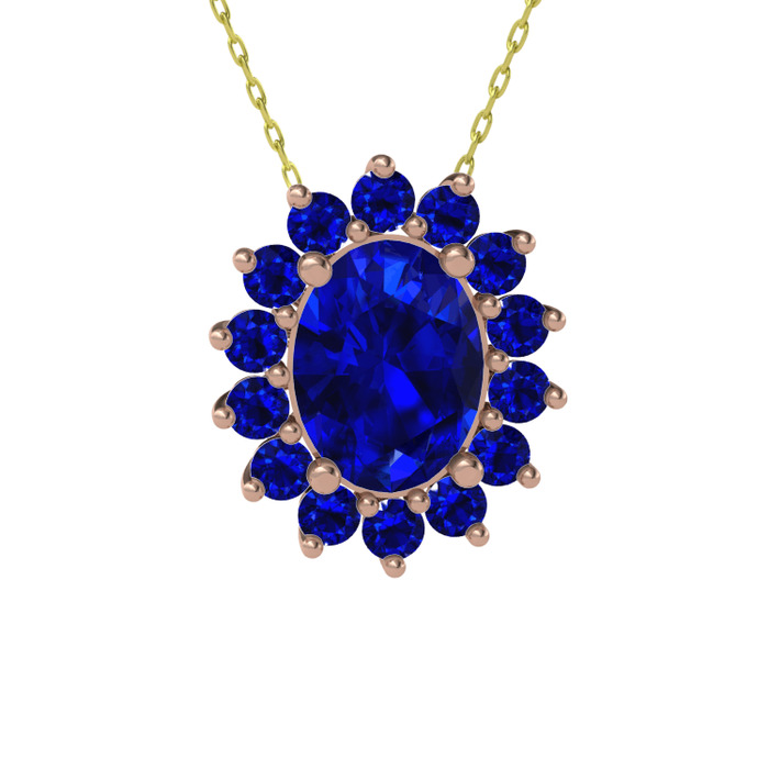 Lab safir 925 ayar rose altın kaplama gümüş kolye (40 cm altın rolo zincir)