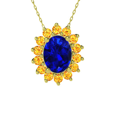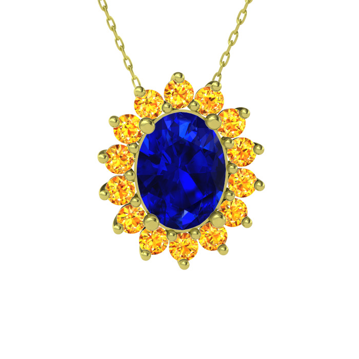 Lab safir ve sitrin 925 ayar altın kaplama gümüş kolye (40 cm altın rolo zincir)