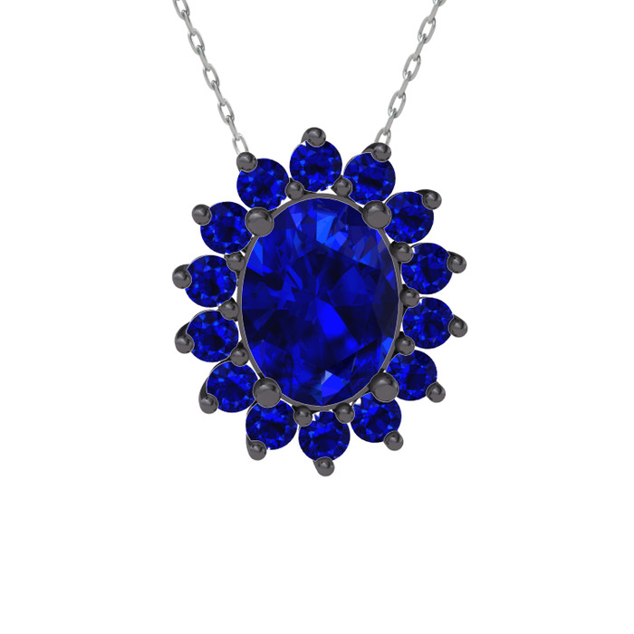 Lab safir 925 ayar siyah rodyum kaplama gümüş kolye (40 cm beyaz altın rolo zincir)